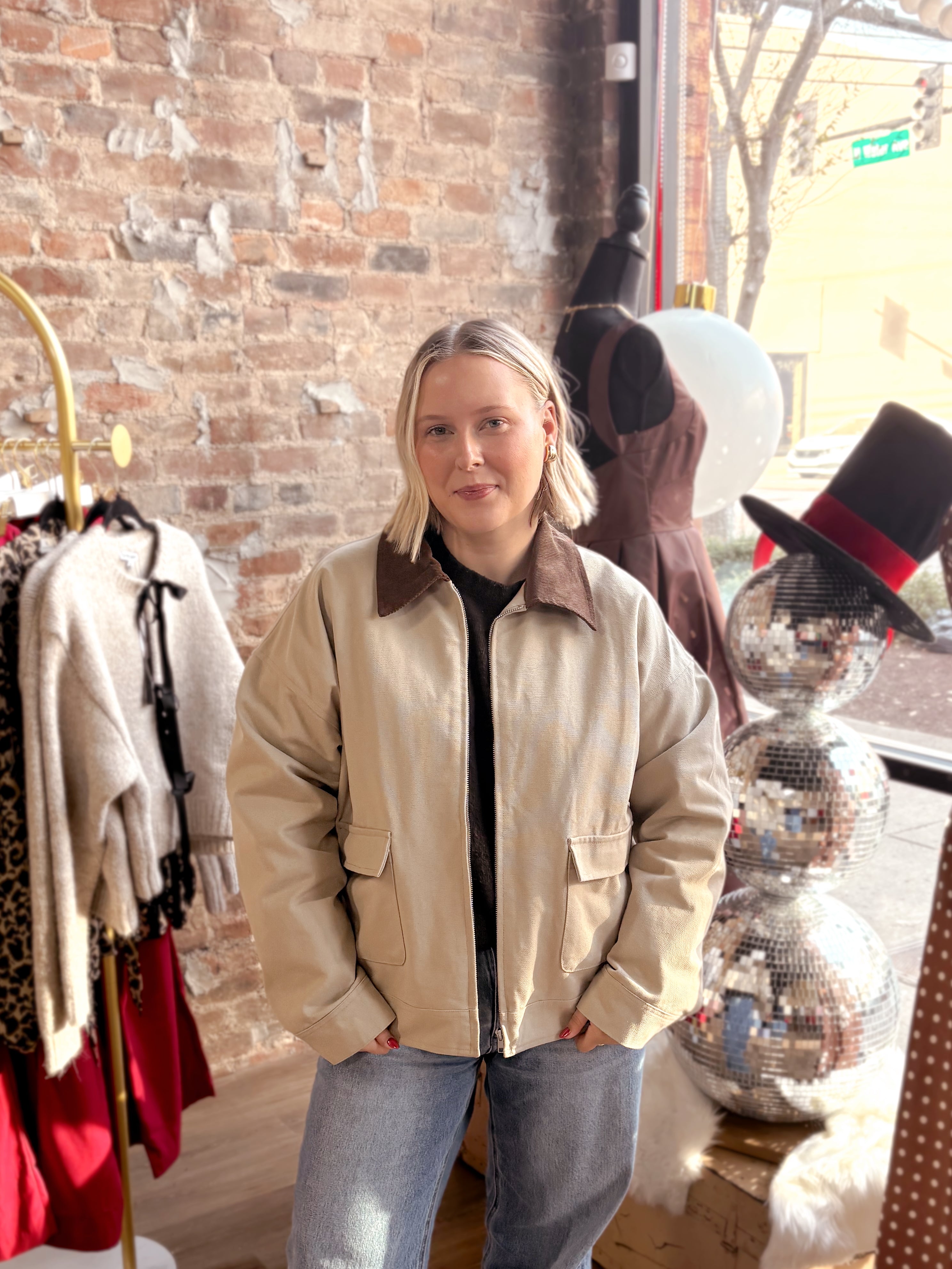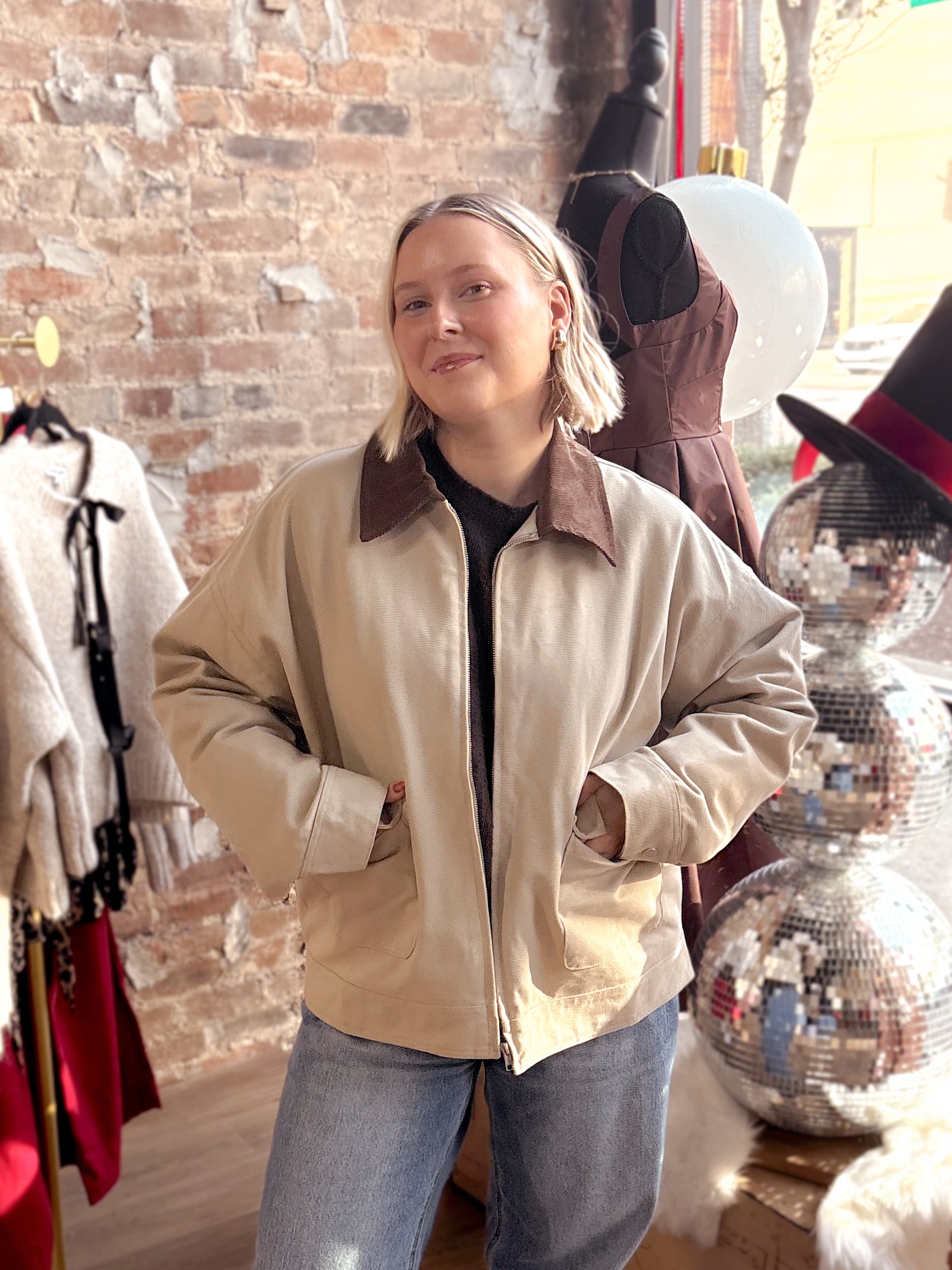 The Kathleen Barn Jacket delivers timeless utility with a contemporary edge. This oversized silhouette drapes effortlessly over layered pieces, while the contrast collar adds visual interest and refined detail. Functional pockets provide practical storage, and a full lining ensures comfort and durability through seasons of wear. A versatile staple that bridges casual and polished aesthetics.