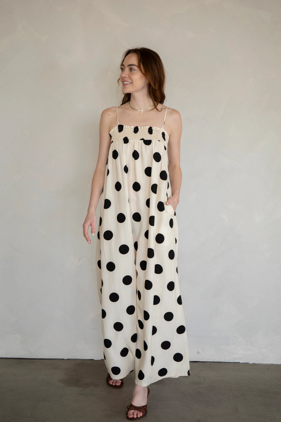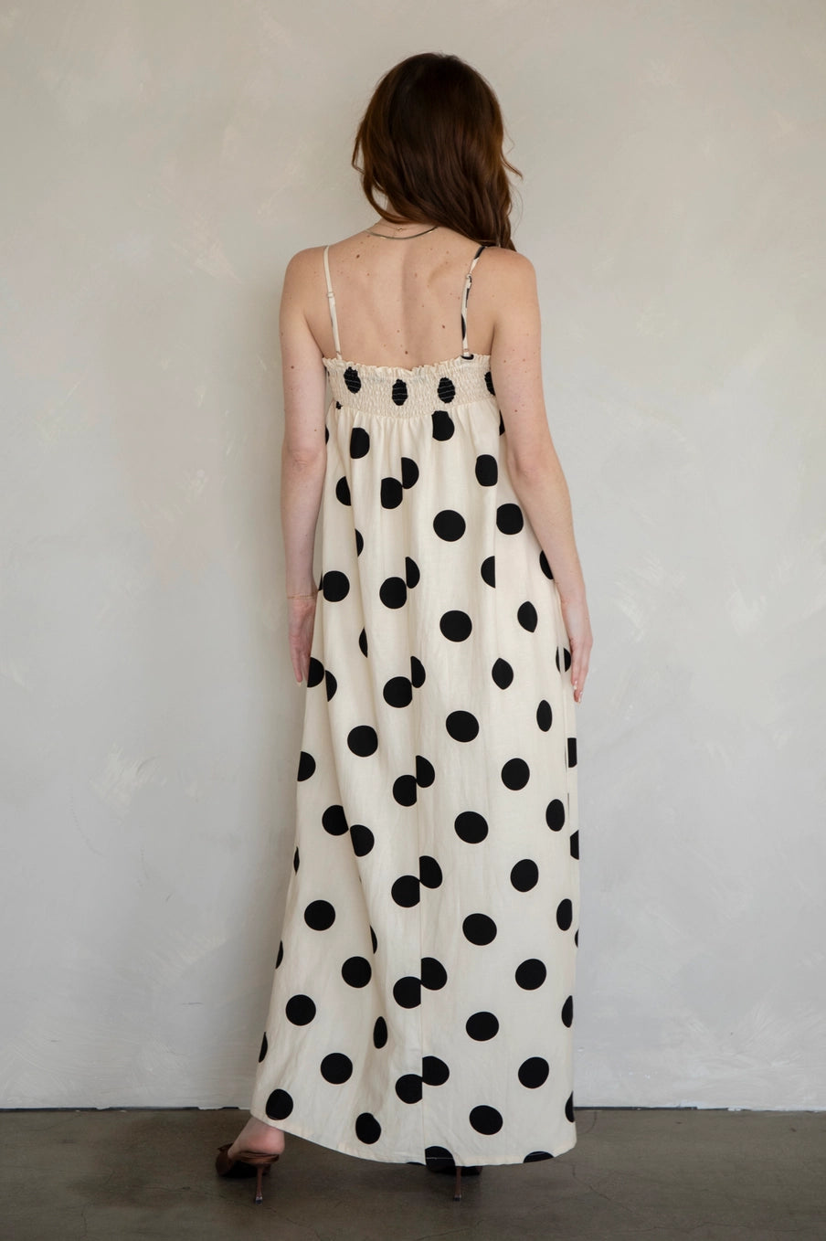 Step out with confidence in the Sandy Polka Dot Maxi Dress, a playful twist on a classic pattern. Crafted from a breathable linen blend, this maxi dress offers both comfort and style, perfect for sunny days and breezy evenings. Its flattering silhouette flows effortlessly, making it ideal for casual outings or dressier occasions. With charming polka dots adding a sweet, retro vibe, this dress brings a fun and flirty energy to your wardrobe. Embrace the perfect mix of chic and carefree with this versatile staple that’s ready to brighten up any day.