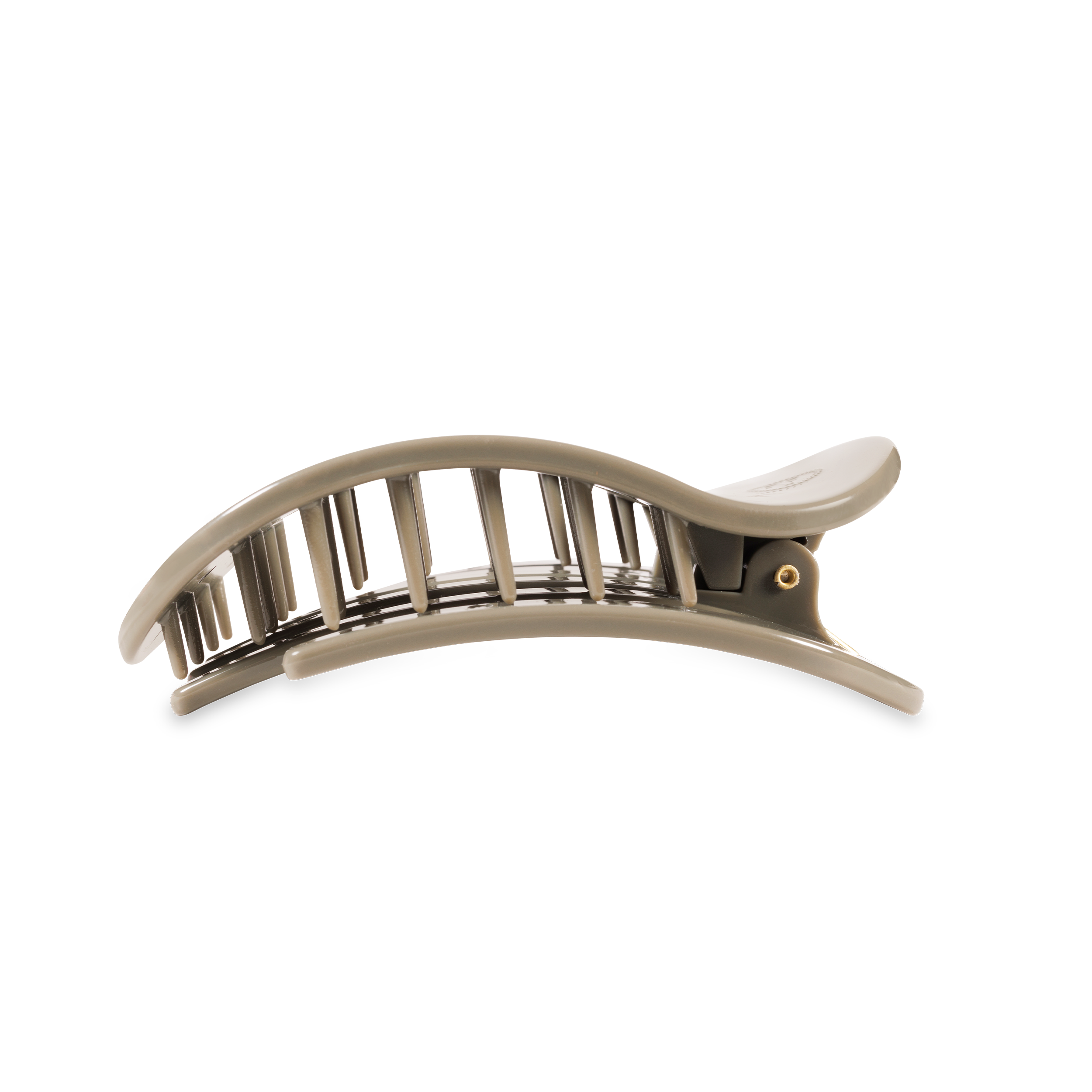 Lay flat and relax with the new TELETIES Sage it Ain't So Medium Flat Round Hair Clip in Sage Green. This hair clip is designed to allow you to lay back flat, do yoga, or sit comfortably in a seat with a headrest, and it is made with the same material that is nearly unbreakable. Lay down flat with comfort Bendable teeth for a secure yet gentle hold Lightweight, durable, and suitable for all hair types Perfect for all-day wear—from sunup to sundown