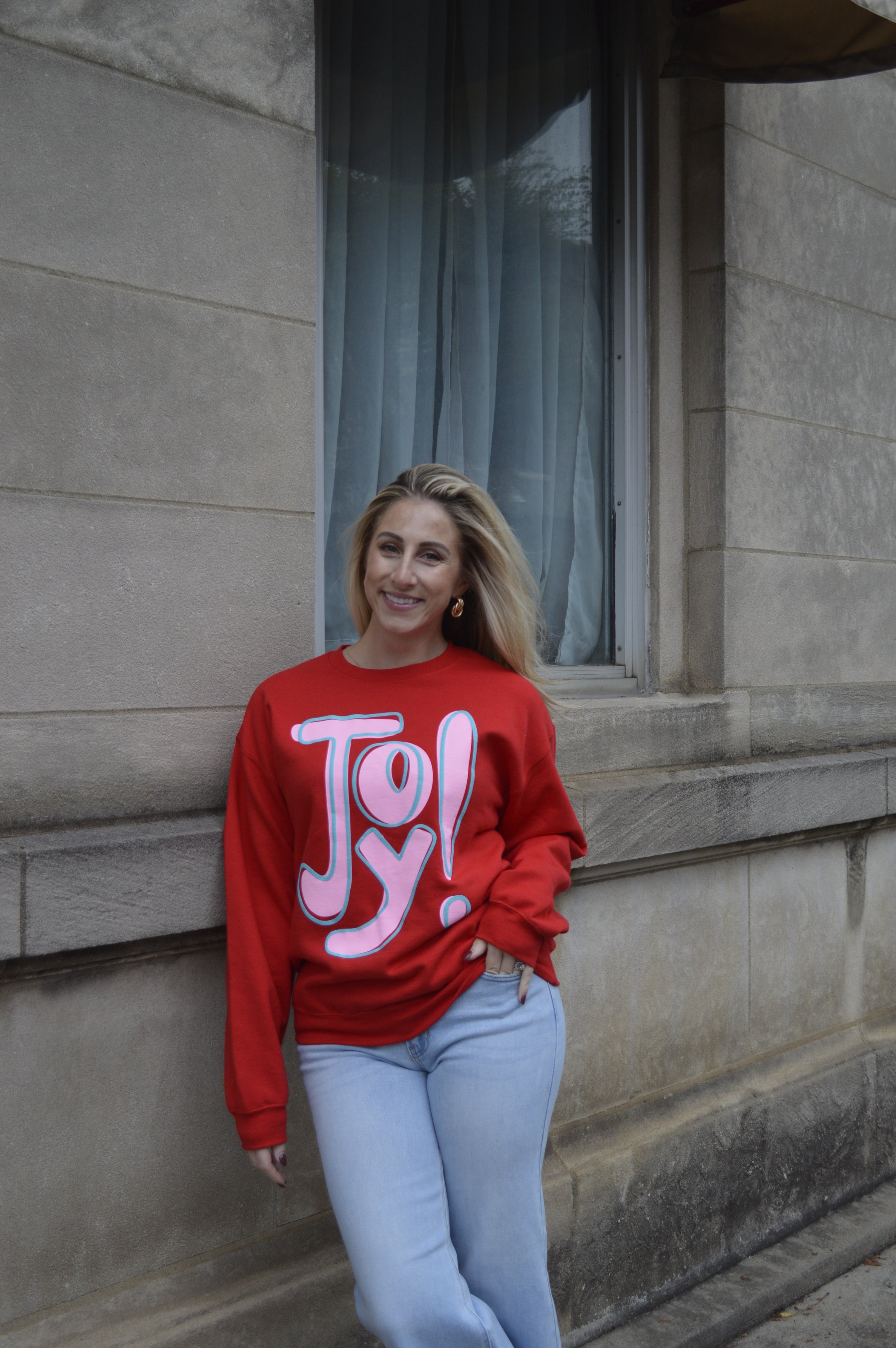 Bring joy to your cozy moments with the Joy! Sweatshirt, perfect for holiday celebrations or lazy weekends at home. This unisex sweatshirt features a soft 50/50 cotton-poly blend that keeps you warm without sacrificing comfort. Its vibrant screen-printed design adds a playful pop of color and festive cheer to your outfit. Whether you’re sipping hot cocoa or sharing laughs around the fireplace, this sweatshirt quickly becomes your go-to for effortless style and snug warmth. Modeled by someone 5'7", wearing an XL for a relaxed, comfy fit that feels like a hug!
