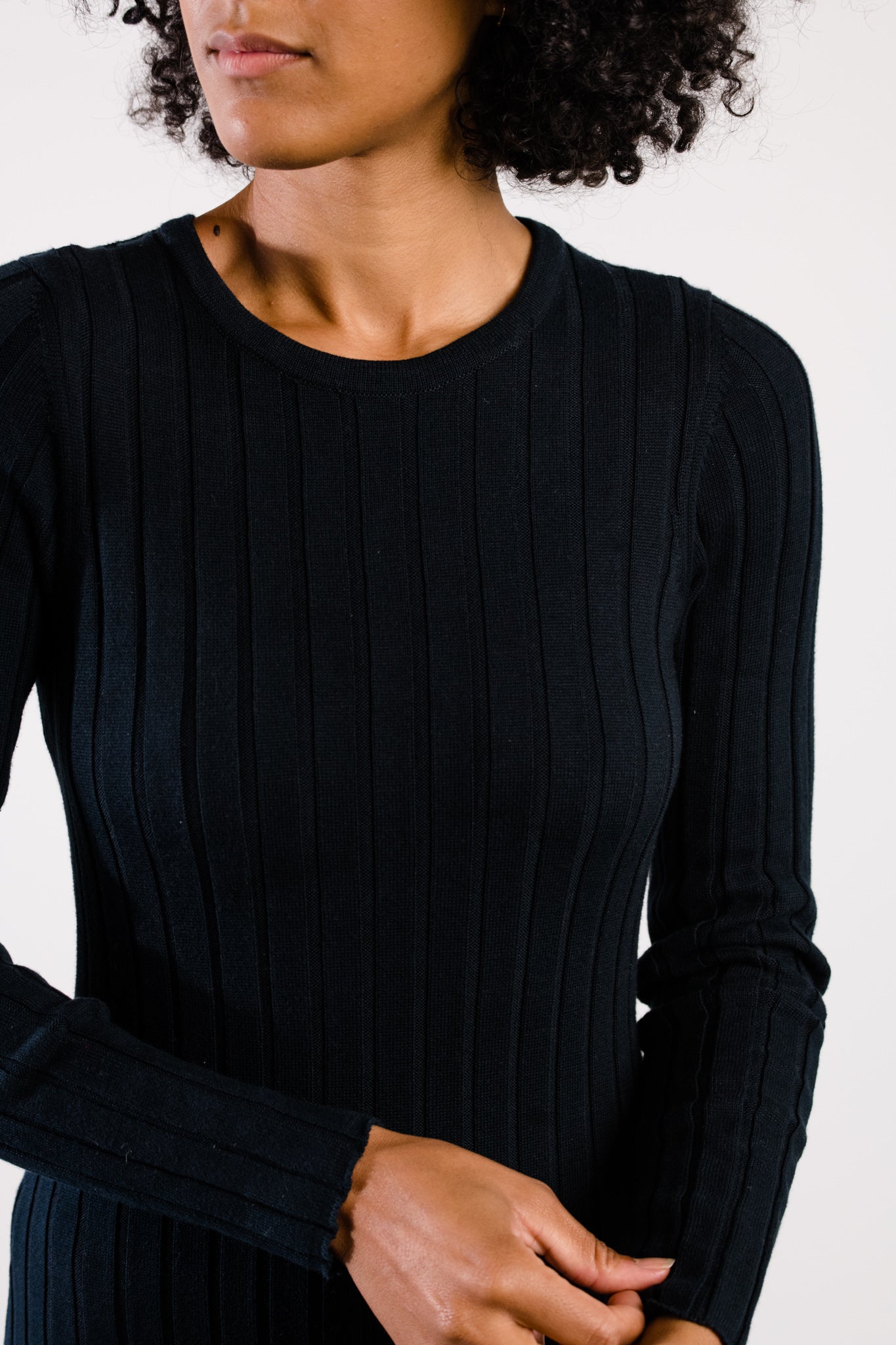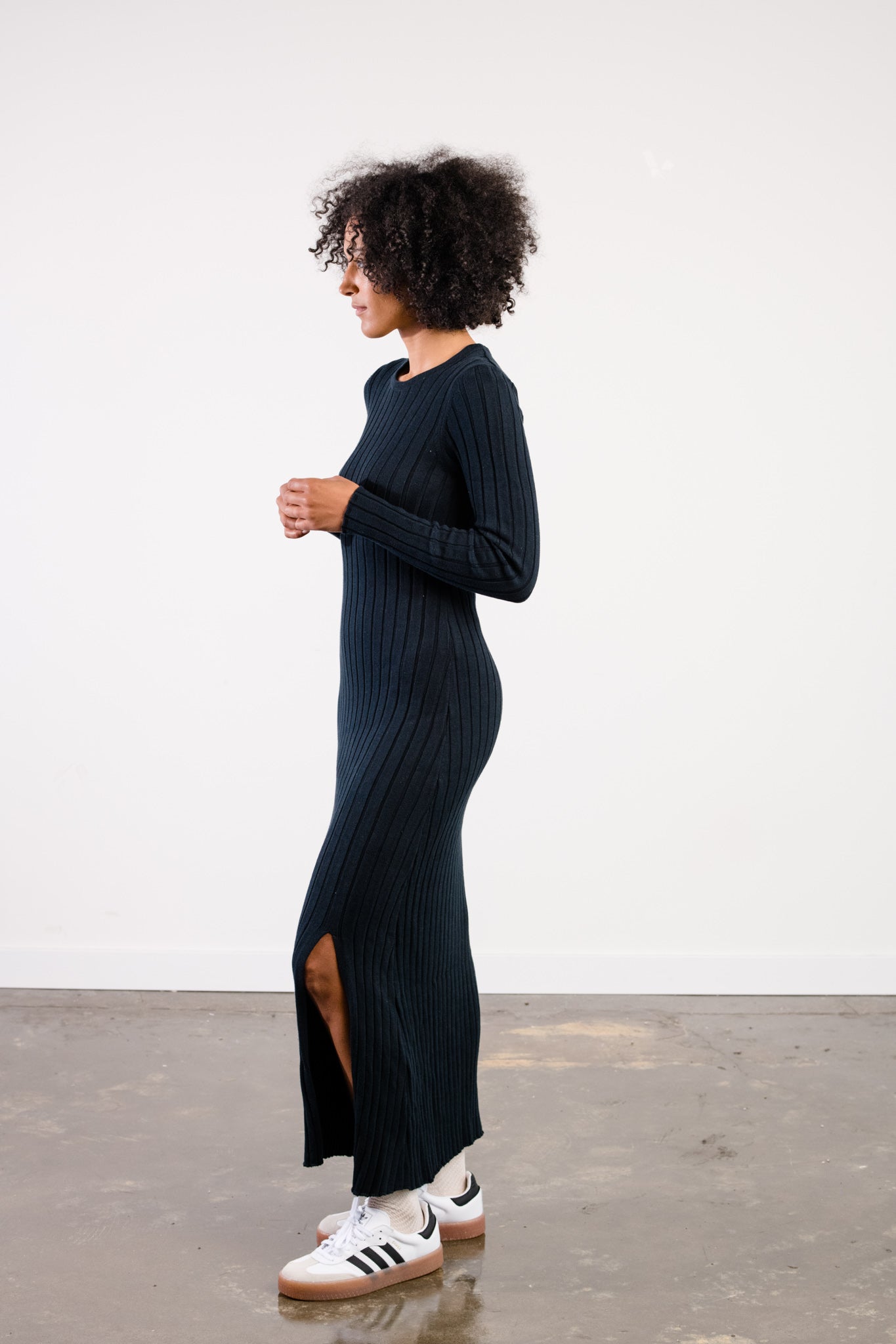 Introducing the Bridget Knit Maxi Dress, where sustainability meets sophistication in a modern silhouette. Featuring a rib stitch detail throughout the body, this dress exudes timeless elegance with a contemporary twist. The elegant front slit detail adds a touch of flirtiness, while the long sleeves offer versatility for various occasions. Whether you're attending a holiday party or a special event, this dress is sure to make you feel confident and chic.